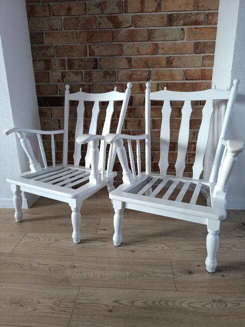 Sprzedam dwa fotele drewniane w stylu vintage. Wygodne, stabilne, w stanie dobrym. Szara poduszka siedziska w ...
